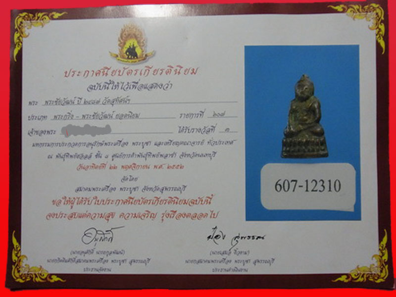 พระชัยวัฒน์ เจ้าคุณศรีฯ วัดสุทัศน์ ปี 2487 ติดรางวัลที่ 3 งานพันธ์ทิพย์ เมื่อ 22 พย.2552