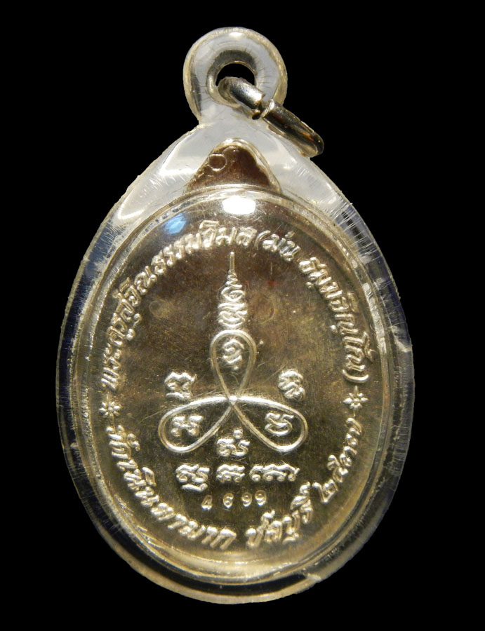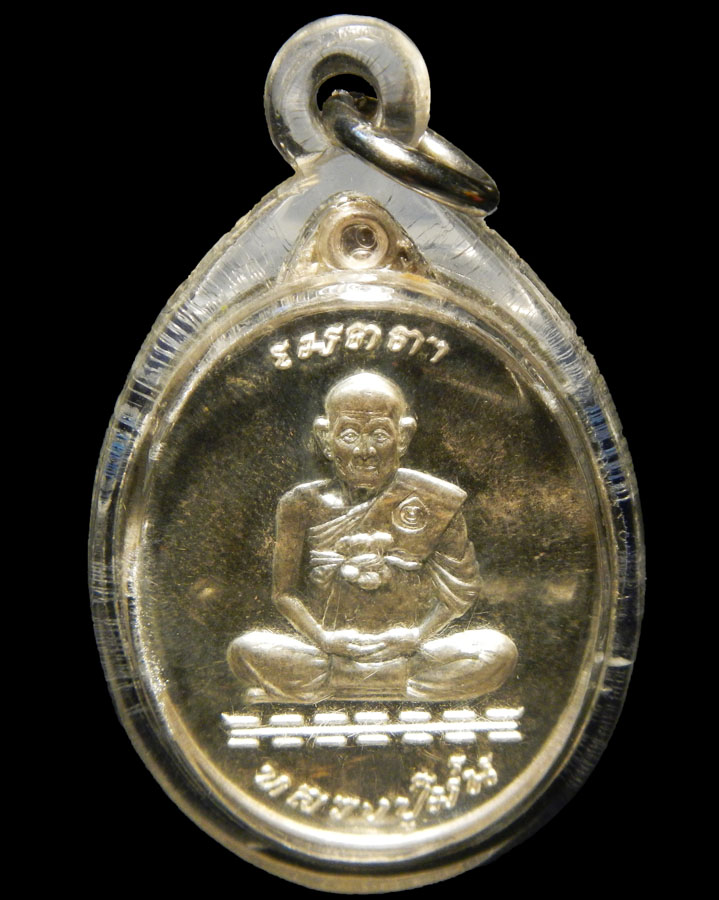 เหรียญรูปไข่รุ่นเมตตา ปี๓๗ เนื้อเงิน เลี่ยมกรอบพลาสติก หลวงปู่ม่น ธมฺมจิณฺโณ วัดเนินตามาก อ.พนัสนิคม จ.ชลบุรี
