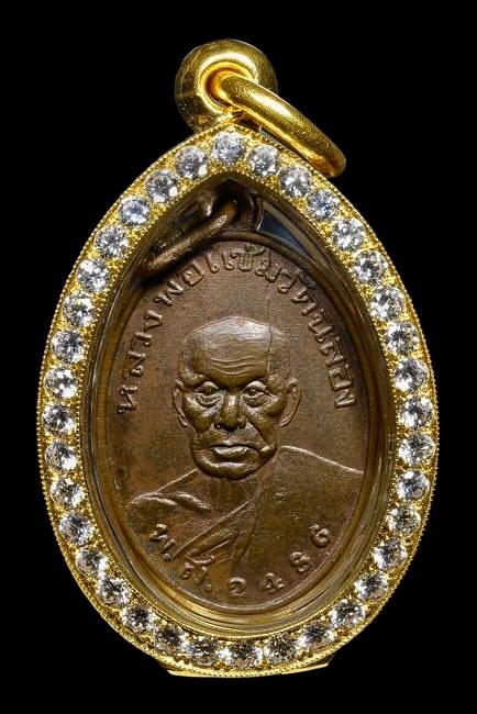 เหรียญหลวงพ่อแช่มวัดฉลอง บล๊อคแตก ปี พศ.2486 เนื้อทองแดงผิวไฟ เหรียญสวยมากๆยังมีผิวไฟ แชมป์โลก