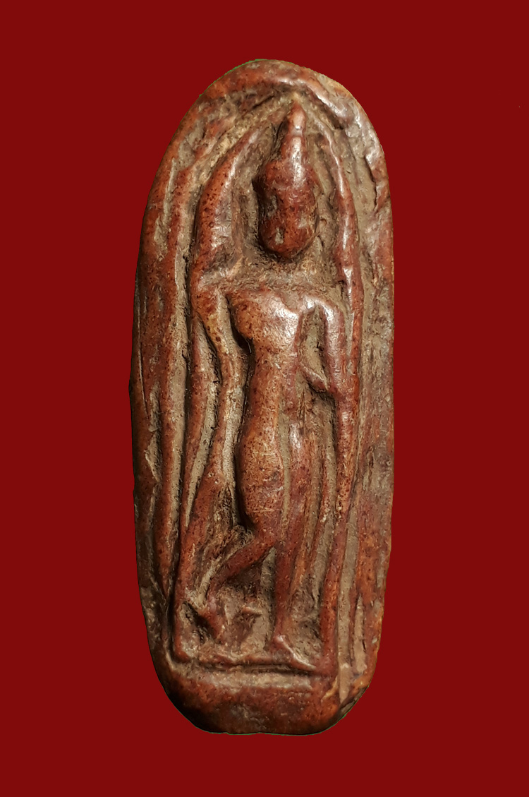 พระกำแพงลีลาเม็ดขนุน พิมพ์ใหญ่ เนื้อดิน กรุเจดีย์กลางทุ่ง