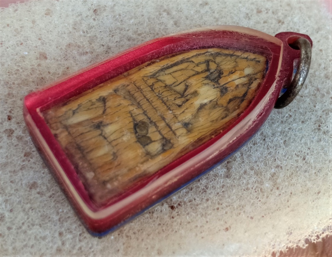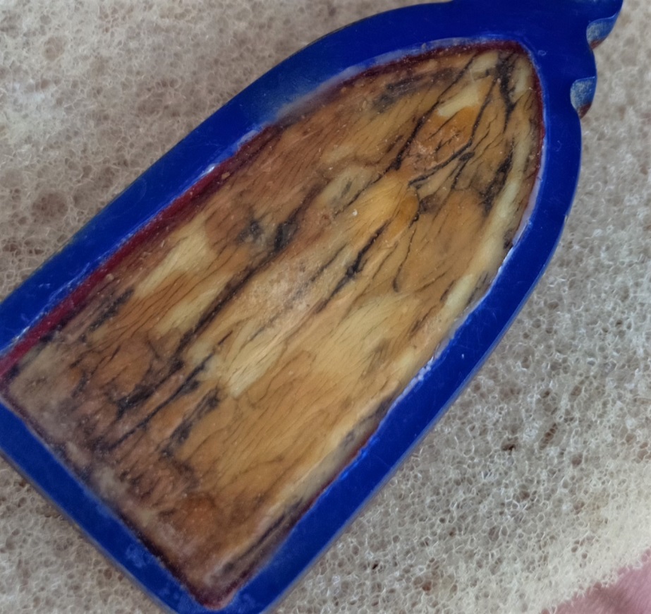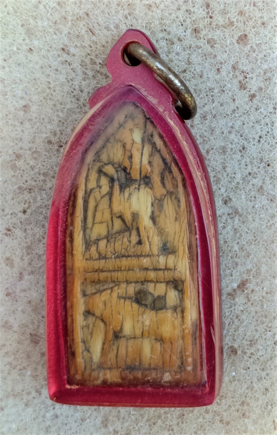งาแกะรูปนางกวักหลวงพ่อเดิม วัดหนองโพ ปีกุน ด้านหลังเป็นพระพุทธรูปยืน สภาพใช้งานมาบ้าง เนื้องาแห้งเก่า เห็นรอยแตกลายงาตามธรรมชาติ อยู่ในกรอบพลาสติกเลี่ยมแบบยุคเก่าดูคลาสสิกไปอีกแบบ เอาไว้ใช้พุทธคุณของท่านครับ ได้มาจากพื้นที่รอยต่อแถวอ.ตาคลีกับอ.ตากฟ้า ประวัติดีครับ รู้ที่มาที่ไป ได้มาไม่แพงมากนักแบ่งบูชากันไปครับ