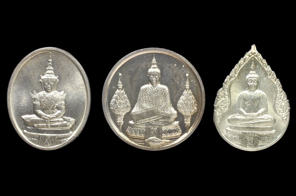 เหรียญฉลองกรุงรัตนโกสินทร์ครบรอบ 200 ปี เนื้อเงิน พ.ศ.2525 ครบชุด 3 เหรียญ บล็อคแรก สภาพสวยเดิมๆ