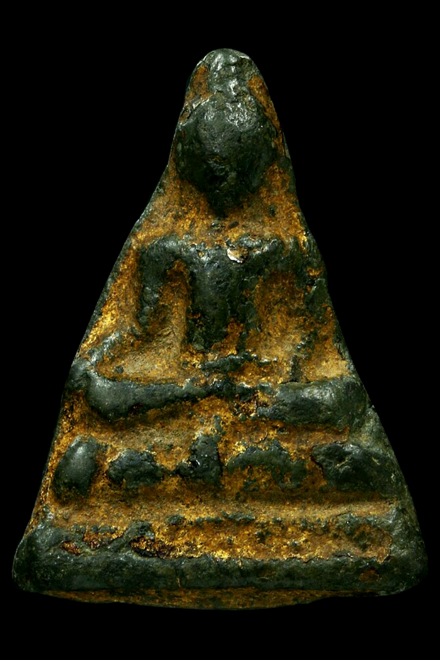 พระร่วงนั่งฐานบัว5กลีบ ลงรักปิดทองเก่า เนื้อชินเงิน กรุอยุธยา เลี่ยมทอง