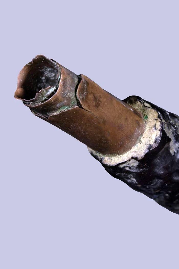 โลหะทองแดงมีสภาพกร่อนตามกาลเวลา เก่าสมอายุเป็นร้อยปี