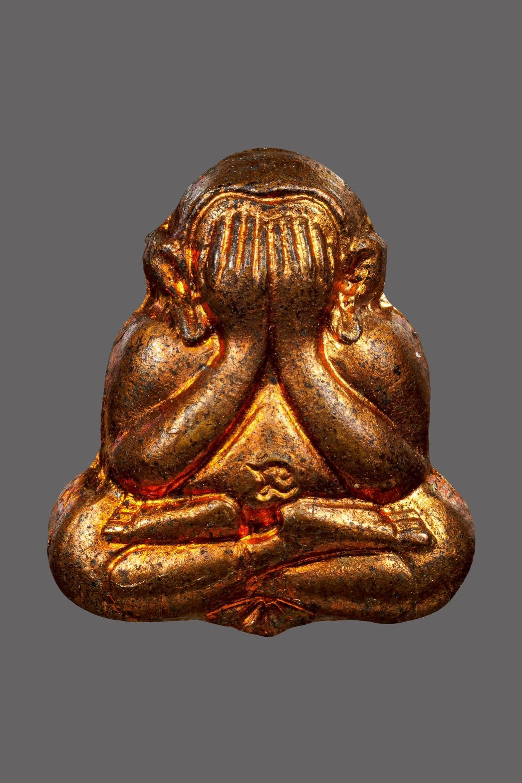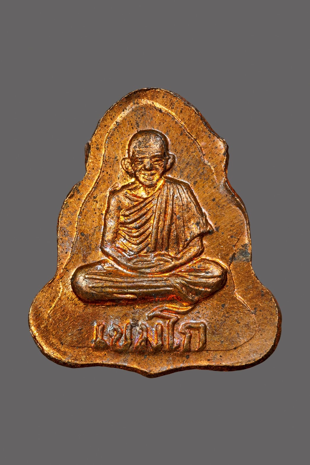พระปิดตาจิ๋วหลังรูปเหมือน หลวงพ่อเกษม เขมโก รุ่น ลาภผล พูนทวี ซินนี้ ฮวดใช้ ปลอดภัยตลอดกาล เนื้อทองเเดง
