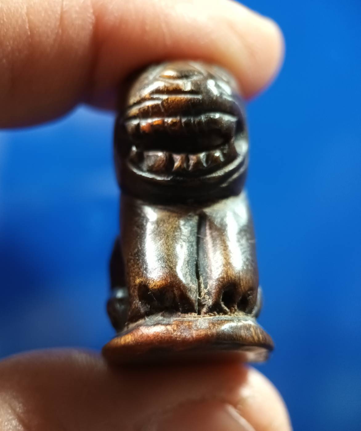 เสืออ้าปากแกะจากเขาควายหลวงพ่อปาน วัดบางเหี้ยคลองด่าน ( ตัวใหญ่แกะจากเขาควายฟ้าผ่าตาย ) เสืออ้าปากแกะจากเขาควายฟ้าผ่าตายลงจารย์ลงอักขระครบสูตรหายากเก่าสวยคมชัด พระบ้าน.จ.สมุทรปราการ.