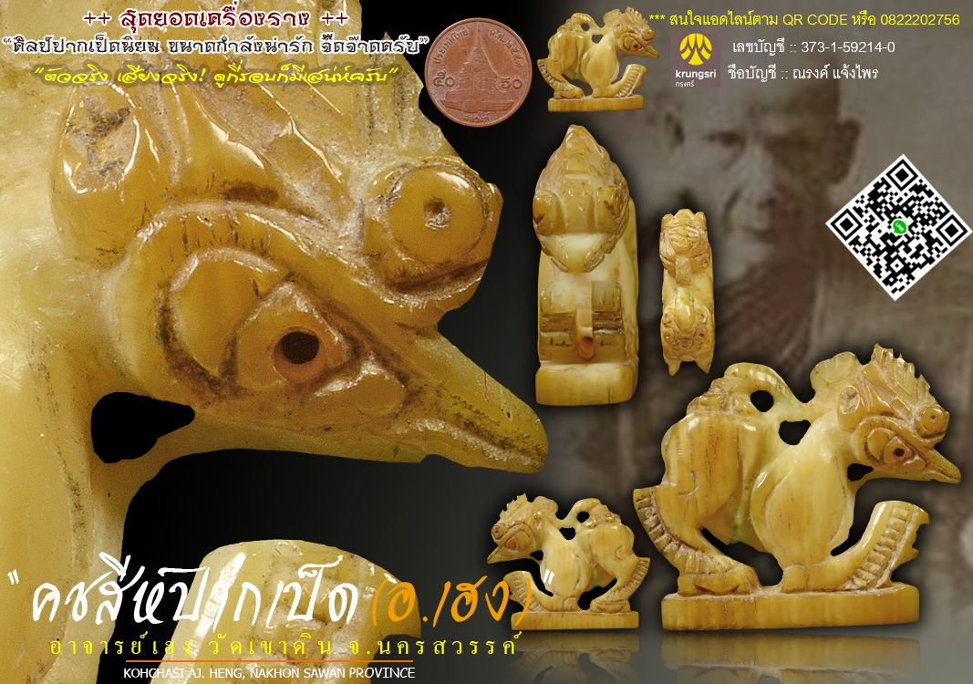 [ ราคา xxx,xxx ฿ ] .....สิงห์ปากเป็ด เลี่ยมทองพร้อมใช้! ศิลป์มาตรฐานเดียวกับในหนังสือ องค์นี้ดูง่ายๆ เนื้องาเก่าถึงยคุแน่นอนครับ เก่าจนขึ้นเสี้ยนหมดแล้ว นับเป็นสุดยอดเครื่องรางมหาอำนาจในตำนานเลยล่ะครับ แกะได้สมส่วน ขนาดกำลังน่ารักน่าใช้ใหญ่กว่าเหรียญ 50 สตางค์หน่อย เลี่ยมทองพร้อมใช้! ขนาดกว้าง x สูง x หนา = 1.1 x 1.6 x 0.5 ซ.ม.ครับ
