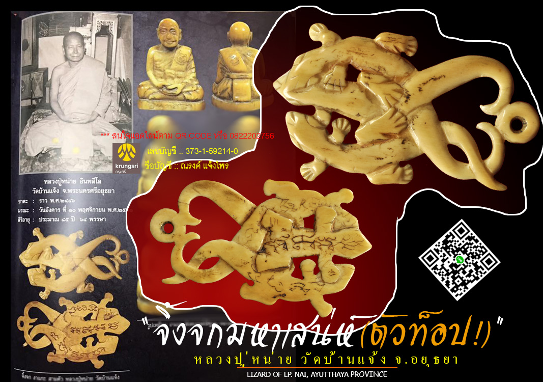 [ Price 1xx,xxx ฿ ] Lizard of LP. Nai, Wat Ban Chaeng, Ayutthaya Province. This item has been certified by the samakom.