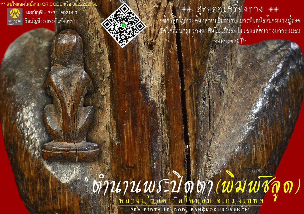 เป็นอีกหนึ่งตำนานของพระปิดตา ดังคำกล่าวที่ว่า ข้าวสุกในกระด้งกลายเป็นหนาม บารมีเหลือล้น"หลวงปู่รอด วัดโคนอน"ถูกวางยาพิษไม่เป็นอะไรเลย แต่คนวางยากรรมสนองปางตาย! ขนาดกำลังสวยตัวเลขก็สวย กว้าง x สูง x หนา = 1.4 x 3.2 x 0.9 ซ.ม. ครับ