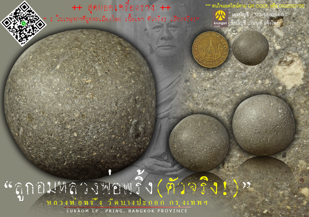 [ Price 1x,xxx ฿ ] Luk Aom LP.Pring, Wat Bang-Prakok, Bangkok Province. Made from special powder.Size : Diameter = 1.4 cm. If you are interest, Feel free to contact me via Line application or call to me.