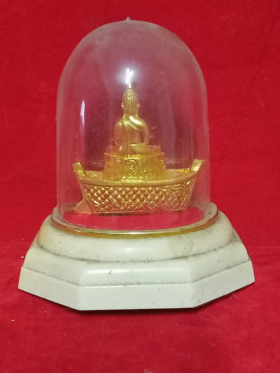 หลวงพ่อโสธร ประทับนั่งเรือสำเภาทอง ตั้งหน้ารถยนต์ ขนาดกว้าง 3 นิ้ว สูง 4 นิ้ว ( วัดรวมที่ครอบ )