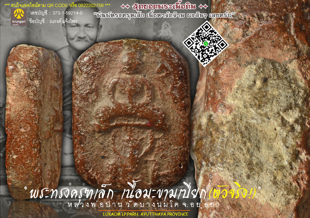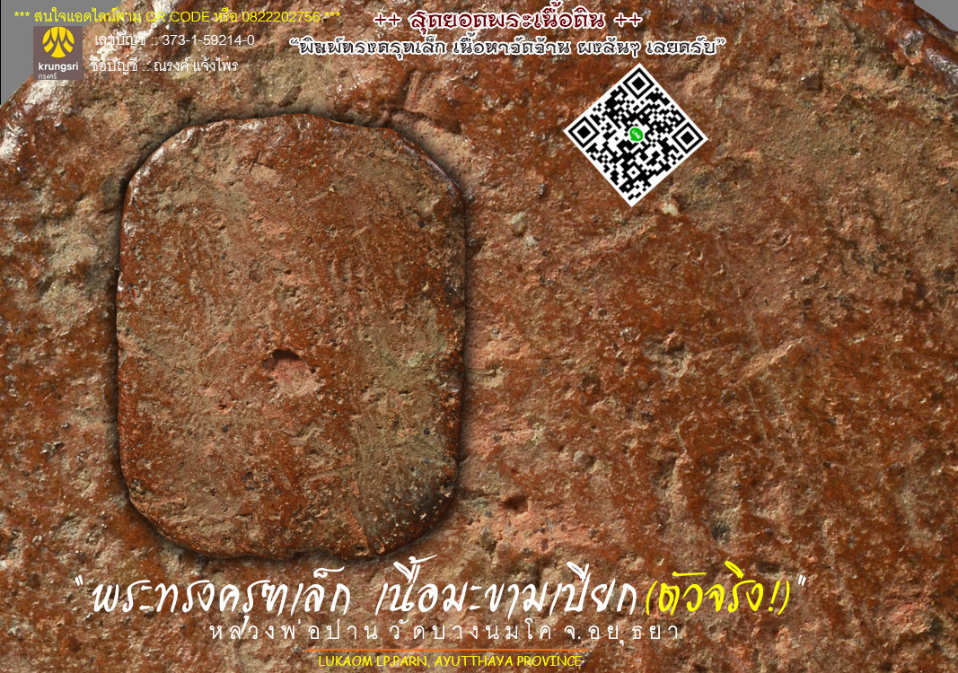 [ Price 2x,xxx ฿ ] Pra-Songkrut LP. Parn, Wat Bangnomkho, Ayutthaya Province. Made from soil. Size : Width x Length x Thickness = 2 x 2.5 x 0.5 cm. If you are interest, Feel free to contact me via Line application or call to me.
