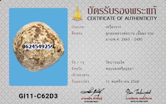 ลูกอมหลวงพ่อปาน วัดบางนมโค จังหวัดอยุธยา พร้อมบัตรสมาคม