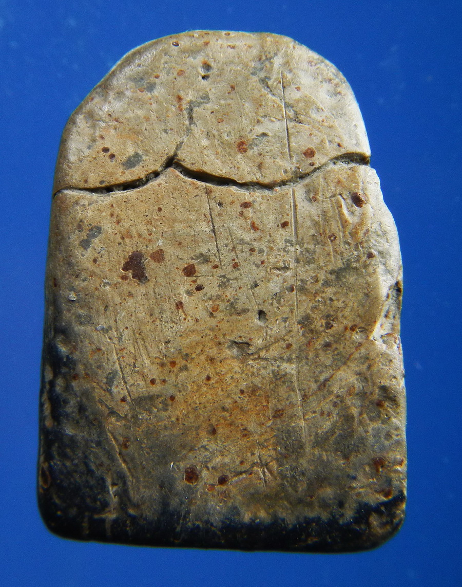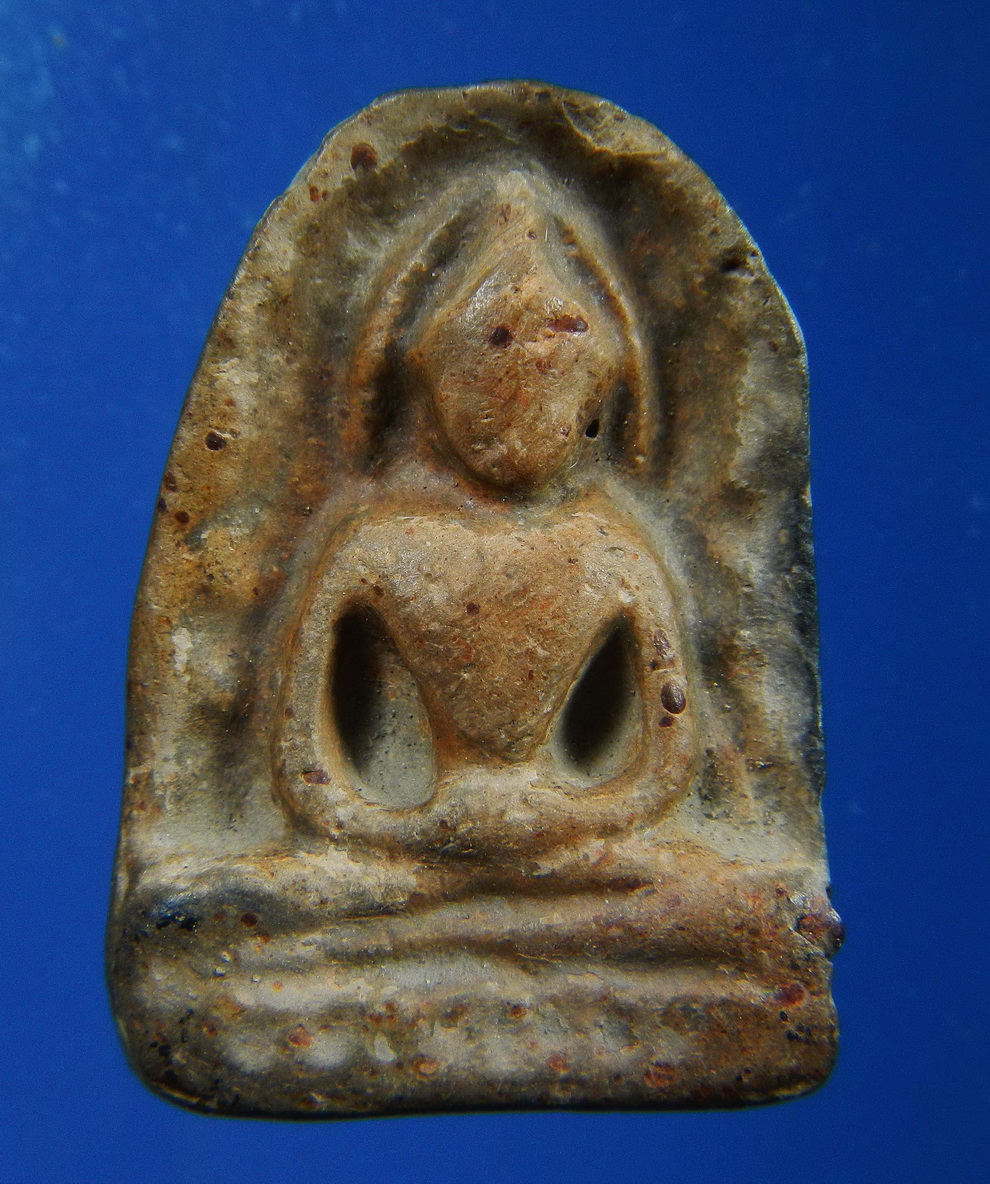 ลักษณะรอยแยก: รอยปริของพระแท้ต้องดู "นุ่มนวล" ขอบของรอยแยกจะไม่คมกริบเหมือนของใหม่ที่ตั้งใจทำให้แตก แต่จะดูมีความมนและมีคราบกรุหรือนวลดินเข้าไปฝังตัวอยู่ข้างในรอยนั้นครับ.อีกมุมหนึ่งที่ ด้านหน้าไม่ชัด แม่พิมพ์ตื้น: อาจเกิดจากแม่พิมพ์ที่ใช้กดเริ่มตื้นเขินจากการใช้งานบ่อยครั้งในสมัยนั้น