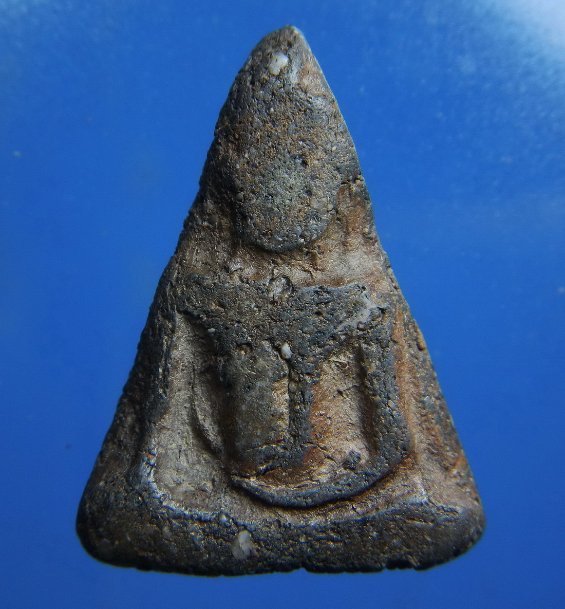 คราบน้ำว่าน: หากสังเกตดีๆ ในรอยแยกมักจะมีคราบสีเข้มคล้ายยางไม้หรือน้ำว่านซึมออกมาอุดอยู่ ซึ่งเป็นลักษณะของพระนางพญาที่ใช้ว่านเป็นส่วนผสมหลักครับ