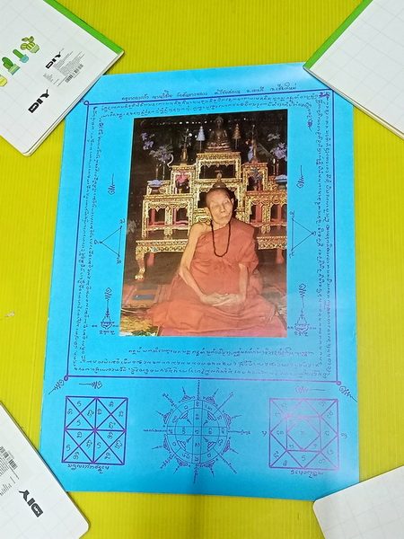 เเผ่นภาพกระดาษยันต์ ครูบากองเเก้ว วัดต้นยางหลวง จ.เชียงใหม่ ขนาด 10.5x15 นิ้ว สภาพสวยสมบูรณ์