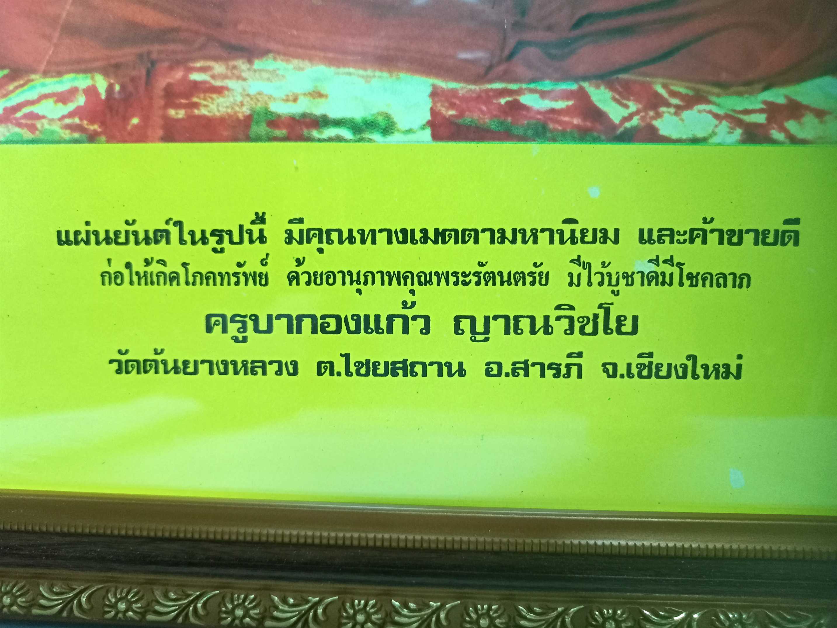เเผ่นภาพกระดาษยันต์ครูบากองเเก้ว วัดต้นยางหลวงจ.เชียงใหม่ ขนาด 12 x 16 นิ้ว สภาพสวยสมบูรณ์ ( หายาก )