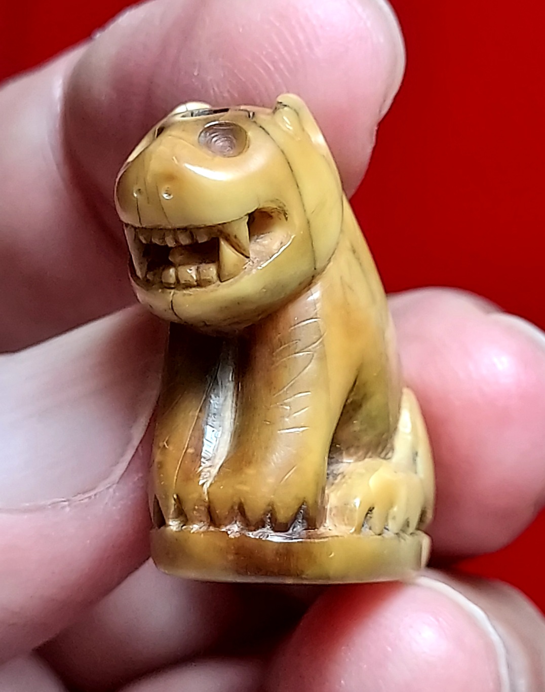 และที่บริเวณตาทั้งสองข้าง มีลักษณะที่เรียกว่า " ตาขุด " เข้าใจว่าเจ้าของเดิมต้องการฝังพลอยที่ตาของเสือ เพื่อเพิ่มความสวยงาม